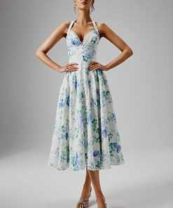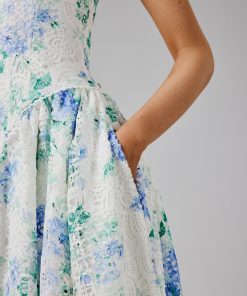 Lavish Alice Women’s Haley Micro Button And Loop Detail Volume Flared Midi Dress In Floral Broderie
