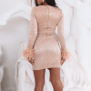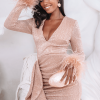 The APHRODITE Draped Skirt Pleated Sequin Mini Dress in Rose Gold is the perfect piece for a night out. This luxury dress-up occasion style features a feather trimmed sleeve and is sure to make you the showstopper at any event. Achieve a glamorous, confident, and stylish look with Aphrodite!