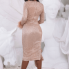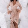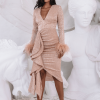The ATHENA Draped Skirt Pleated Sequin Midi Dress will stand out for its statement luxury details. The gold sequin midi dress is fitted for a sleek and sharp look. Add a touch of sophistication to any event with this indulgent piece.