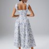 Step into effortless elegance with our BLOSSOM Tie Shoulder Corset Sundress in Blue Porcelain. Crafted from luxurious premium crepe, this chic and feminine piece is perfect for spring and summer occasions. Its timeless blue porcelain hue is complemented by a refined square neckline and flattering self-tie straps that add a romantic touch. The corseted waist enhances your natural silhouette, creating a close-to-body fit that’s both comfortable and elegant. Functional side seam pockets bring practicality to this sophisticated design, making it ideal for garden parties, spring celebrations, or dreamy holiday destinations. Embrace the charm and versatility of this sundress, the perfect choice for sunny days and special moments.
