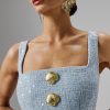 Expertly crafted from premium crepe in timeless black, the CELESTE Pearl Embellished Blazer is the epitome of elegance and luxury. Its longline silhouette features a centre front split and fluted sleeves adorned with delicate pearl trim. The corseted waist, embellished with intricate pearls and diamanté, cinches your figure for a glamorous and polished look. Complete with a classic lapel and jet pocket, this blazer is perfect for making a refined statement at any formal occasion. Pair with our JAYDE Tailored Trouser in Black for a complete and chic look.