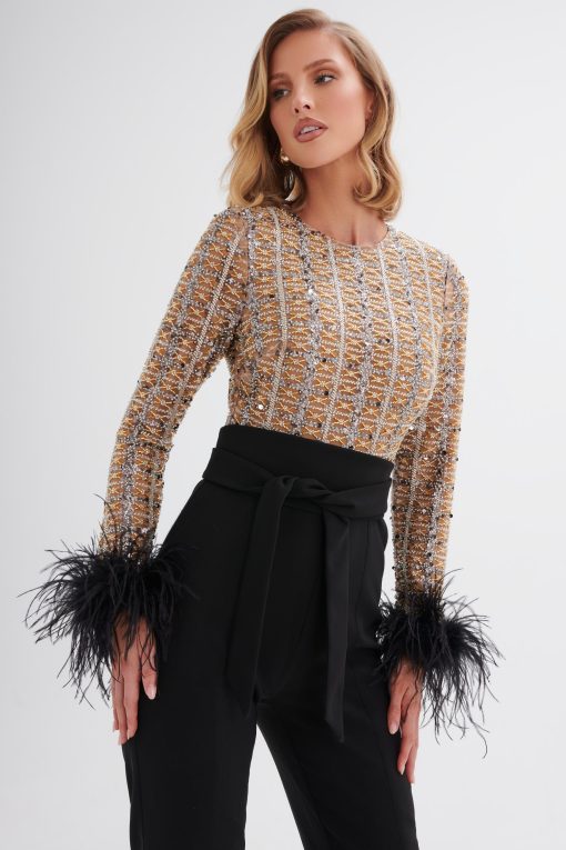 - Mixed Sequin Embellished and Embroidered Sheer Upper Body-100% Polyester