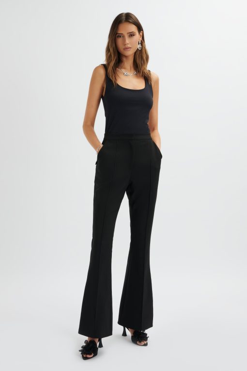 Expertly tailored for a flattering fit, the EMELIE fit & flare trouser is crafted from premium crepe fabric in sleek black. The centre leg pin tuck detail elongates the silhouette, whilst the side pockets add functionality. A sleek centre front zip with hook and bar fastening ensure easy wear.