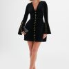 The EZARA dress features a mini length and close-fitting silhouette, enhanced by the elegant jacquard fabric. Puff sleeves and subtle black & purple colour tones bring a touch of sophistication to this timeless classic. Flattering and perfect for any occasion.