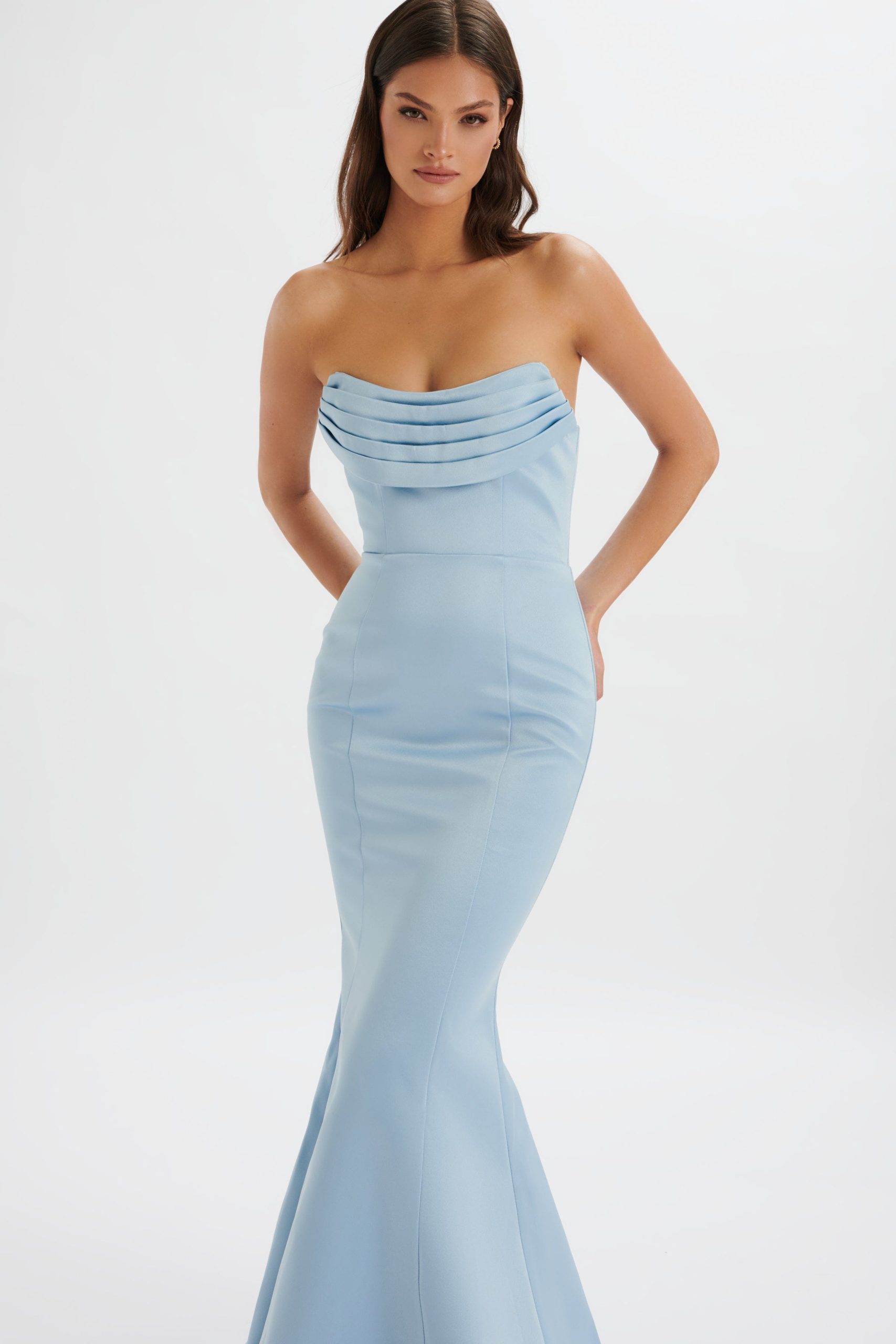 Channel your inner Cinderella and become the belle of the ball in our FREYA Bonded Satin Cowl Neck Maxi Dress in Dusty Blue. Simply elegant, the maxi length elongates your silhouette whilst a carefully crafted pleated neckline adds a touch of femininity.