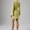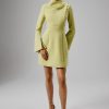 Lavish Alice Women’s Gemma High Neck Rose Button Long Sleeve Mini Dress In Lime