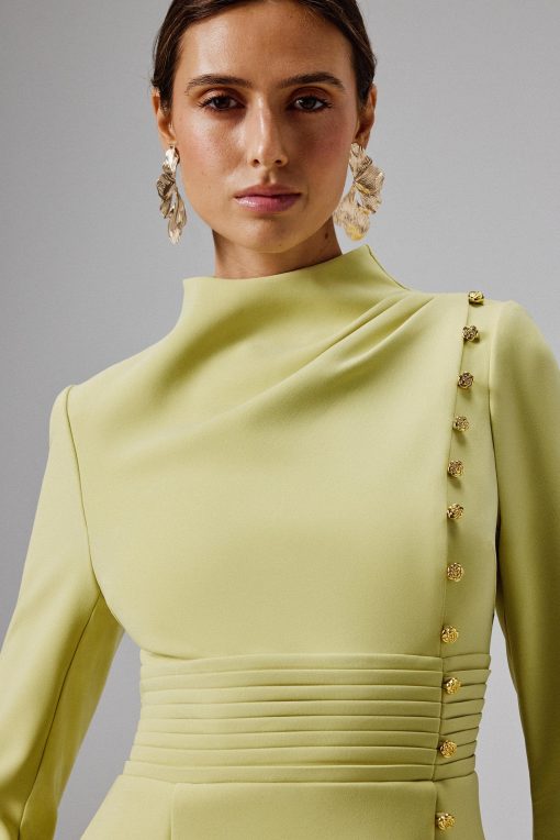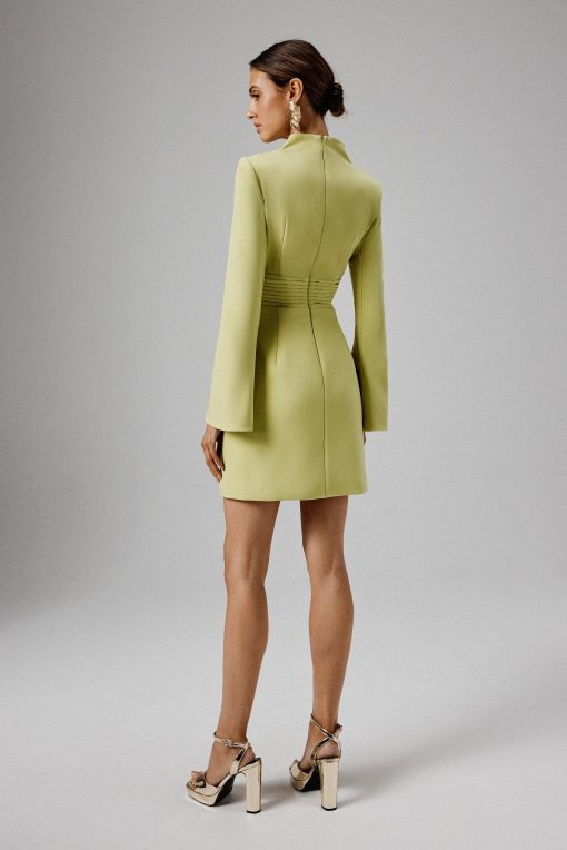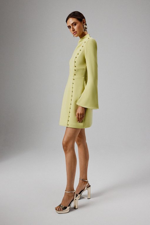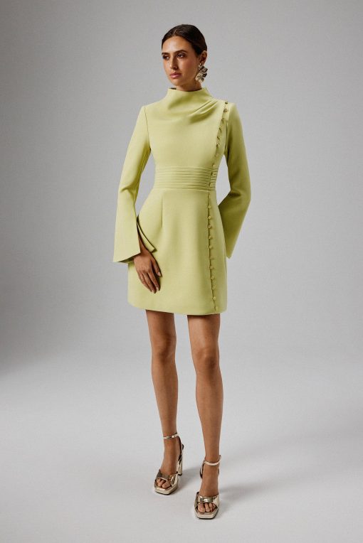 Lavish Alice Women’s Gemma High Neck Rose Button Long Sleeve Mini Dress In Lime