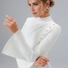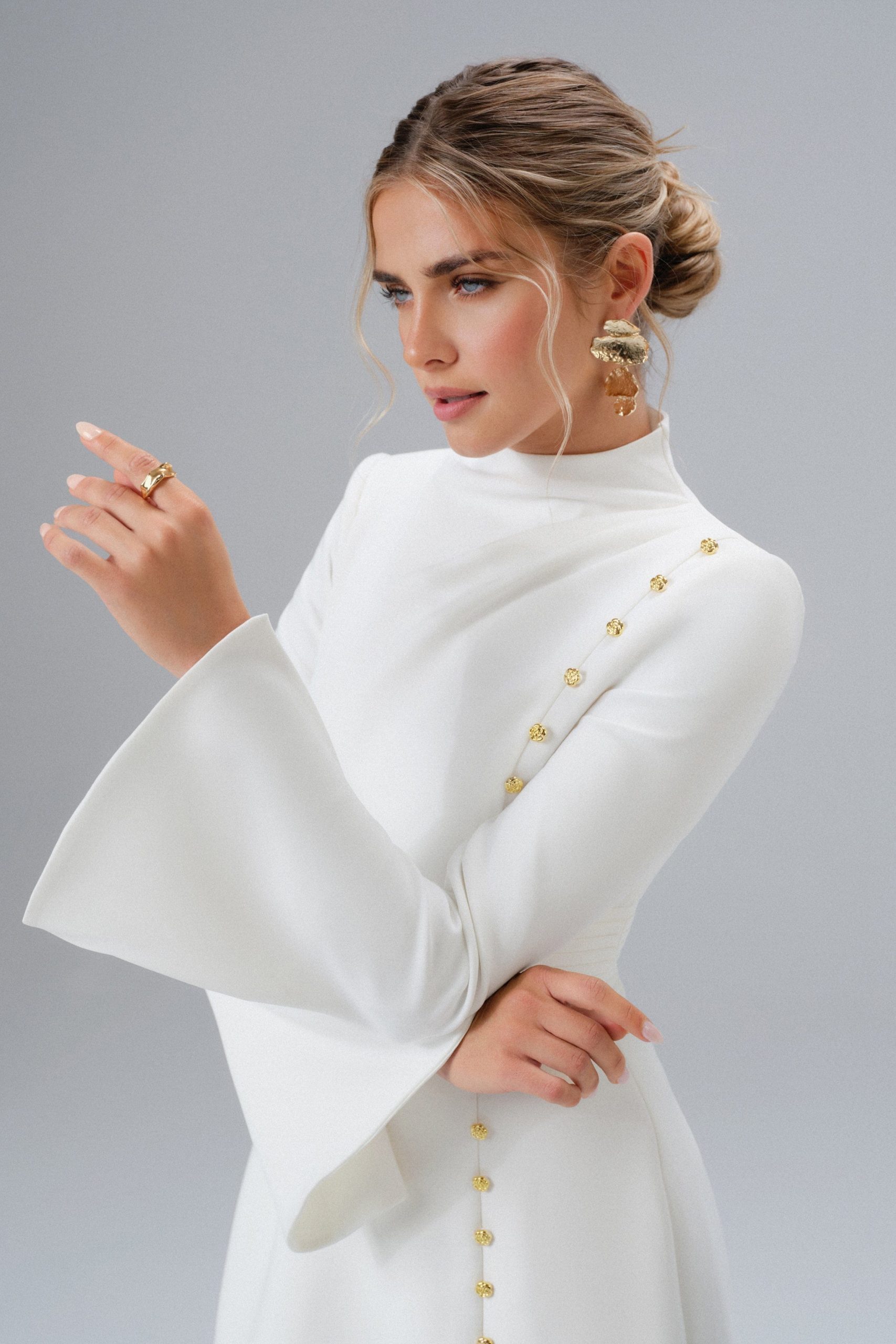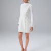 Lavish Alice Women’s Gemma High Neck Rose Button Long Sleeve Mini Dress In White