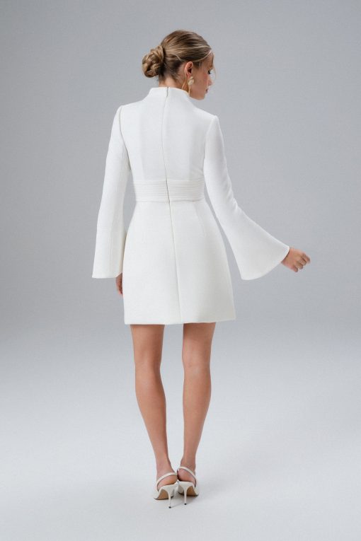 Lavish Alice Women’s Gemma High Neck Rose Button Long Sleeve Mini Dress In White