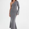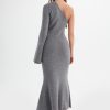 Lavish Alice Women’s Huda Knitted Asymmetric Fit & Flare Midi Dress In Grey
