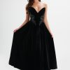 Lavish Alice Women’s Isobel Jewelled Applique Velvet Midi Dress In Black