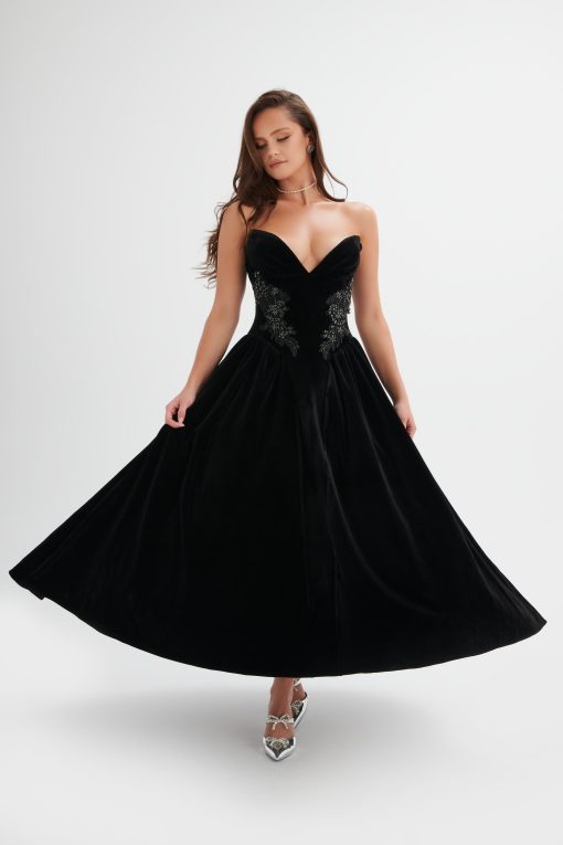 Lavish Alice Women’s Isobel Jewelled Applique Velvet Midi Dress In Black
