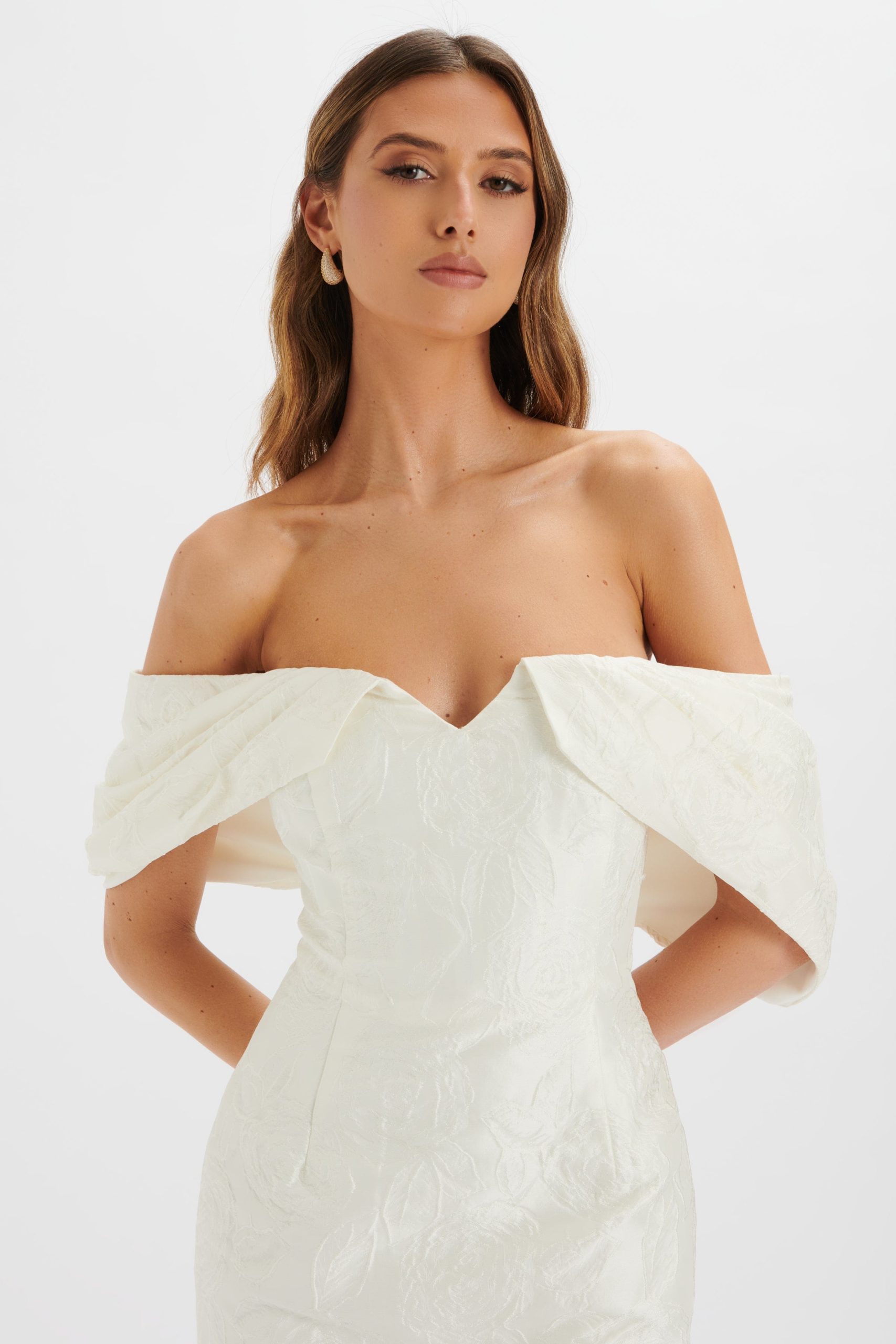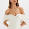 Lavish Alice Women’s Katelynn Bardot Mini Dress With Puff Sleeve In White Jacquard