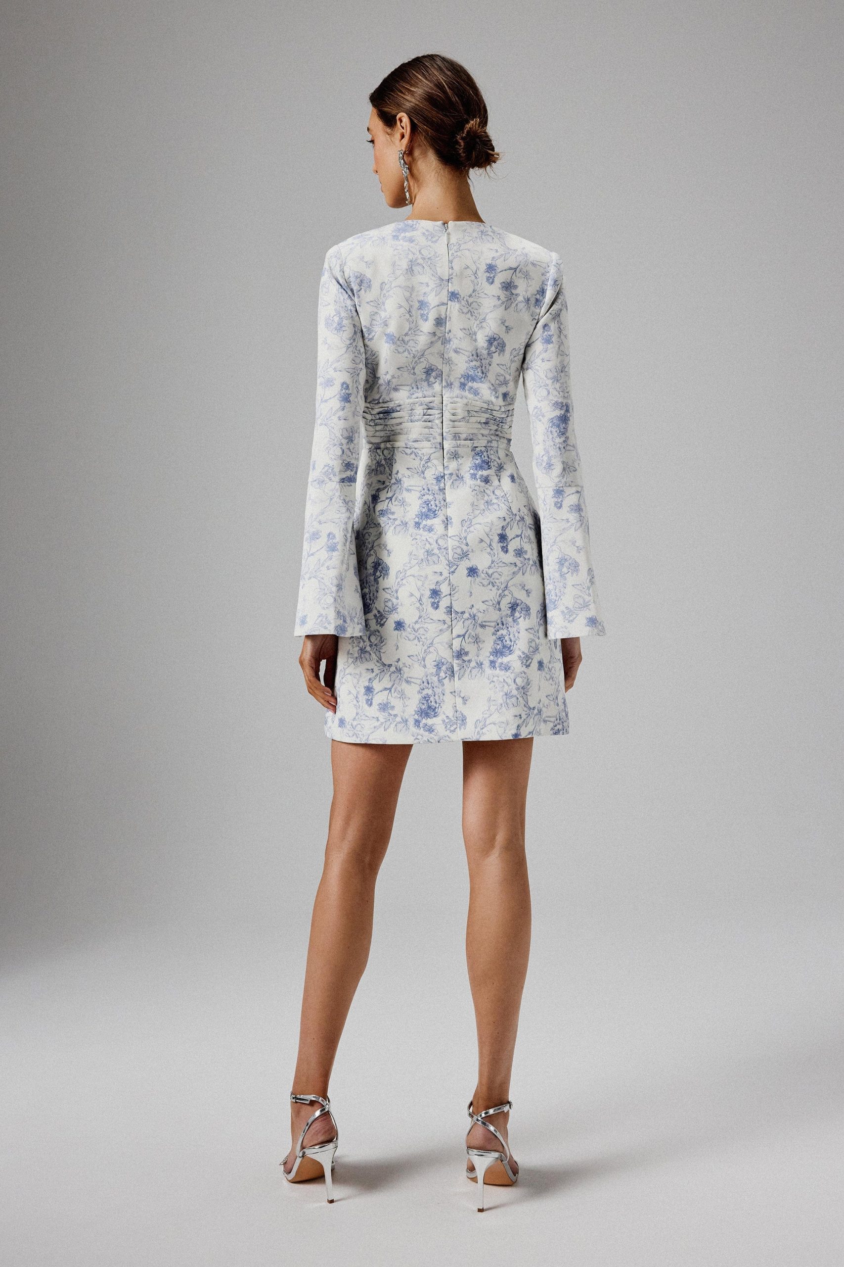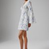 Lavish Alice Women’s Lara Fluted Sleeve Micro Button Mini Dress In Blue Porcelain
