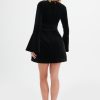 Introducing the LARA Fluted Sleeve Rose Button Velvet Mini Dress in Black – a stunning fusion of luxury and sophistication. Crafted from premium black velvet, this dress showcases a close-to-body fit that’s beautifully complemented by a flattering pleated waistband and a tulip-style mini skirt, creating an elegant, feminine silhouette. Delicate gold rose buttons adorn the centre front and the elegant fluted cuffs , adding a touch of opulent charm. With concealed shoulder pads enhancing the sleek silhouette, this dress is the epitome of chic refinement. Perfect for formal occasions, romantic date nights, or elegant dinner parties, the LARA Velvet Mini Dress makes a perfect addition to your winter wardrobe.