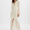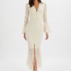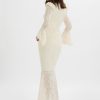 Experience effortless elegance in our LAUREN Fluted Sleeve Maxi Dress. Made from premium floral textured chiffon in a cream hue, this dress features fluted sleeves and a fishtail hem for an elongated contour, while the micro button detailing down the centre front adds a touch of sophistication. This dress is perfect for any spring or summer event, especially when paired with a tan.