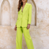 The LIANA Tailored Masculine Blazer makes a sophisticated statement with its oversized, boyfriend fit and vibrant, lime green hue. This fashion-forward blazer is perfect for anyone looking to up their outfit game with power suit.