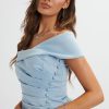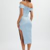 This Bardot Bandeau Pleated Midi Dress features a structured bonded satin fabrication in a refined shade of cornflower blue. The dress showcases notable pleats, fine micro button accents, and a sophisticated longline midi length. The dress boasts a flattering twisted detail neckline for added elegance. Its asymmetric hemline and high split adds glamour, making it the perfect choice for any special occasion. Concealed corsetry and boning ensure a form fitting silhouette.