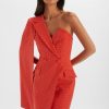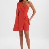 Dress to impress in the MARCY Crystal Embellished One Shoulder Cape Blazer Dress in red! Meticulously crafted from premium crepe in a captivating red hue, this mini dress showcases sparkling crystal embellishments and a unique asymmetric one-shoulder cape, infusing every moment with opulence and allure. Perfect for parties and special occasions.