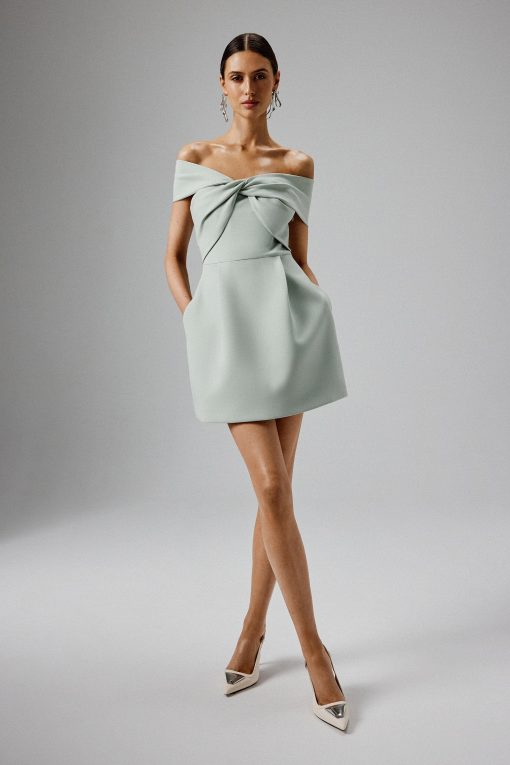 Indulge in elegance with the MILA Twisted One Shoulder Mini Dress. Crafted from premium crepe in a stunning sage green hue, this dress features a chic twisted one shoulder design and a flattering tulip skirt silhouette. With functional side seam pockets, it’s perfect for any occasion, from weddings to date nights. Make a sophisticated statement with this timeless dress.