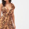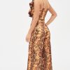 Featuring a one shoulder frill, this wrap design culotte shapes the body beautifully while the culotte leg contrasts the fitted waist. In a luxe satin snake print, NORA is perfect for golden hour and way into dark nights.