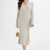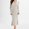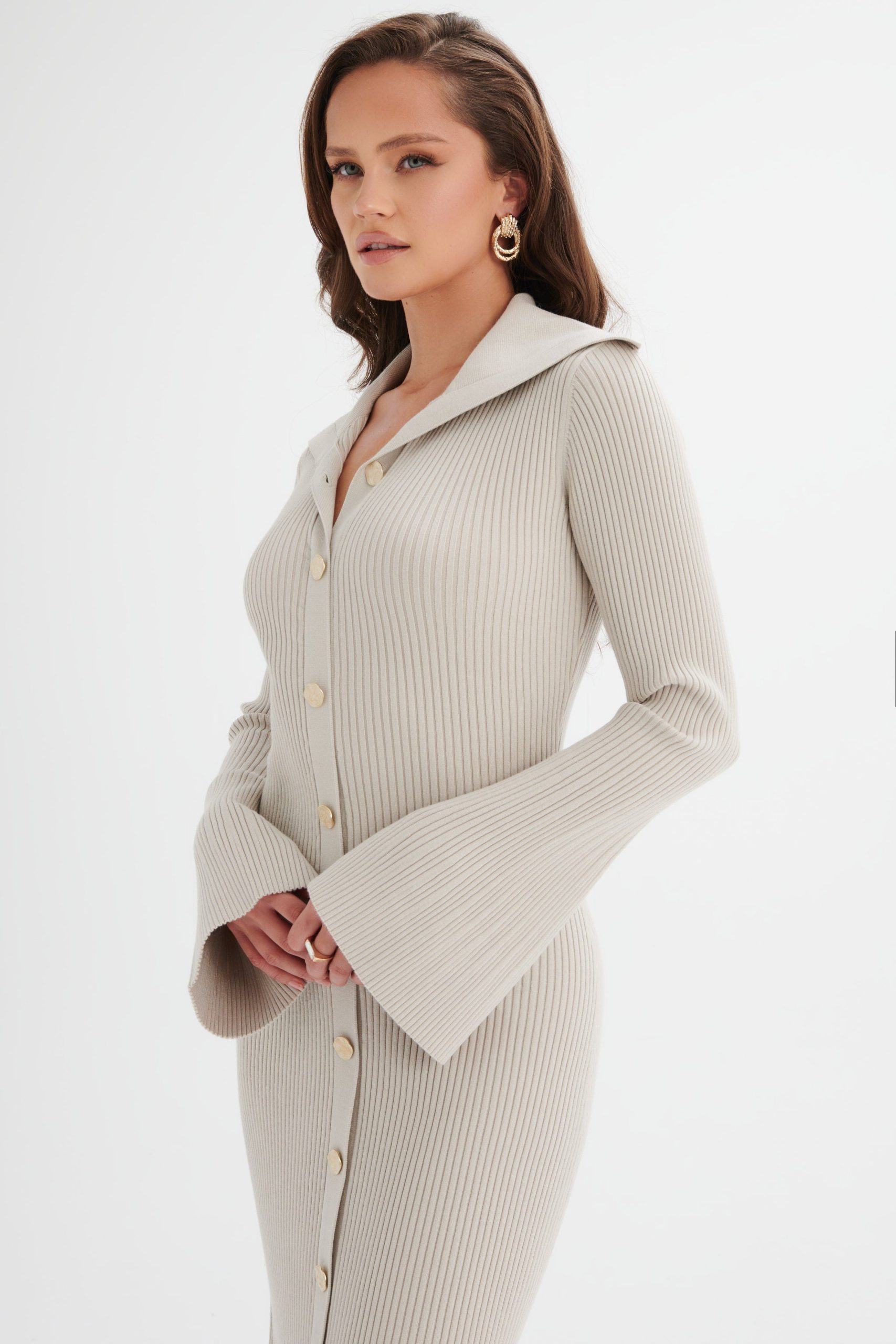 Lavish Alice Women’s Parker Knitted Ribbed Fit & Flare Collared Dress In Stone
