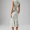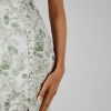 Introducing our best-selling SAFFRON High Neck Satin Midi Dress in Sage Porcelain Print. This elegant and sophisticated dress features premium crepe in a beautiful sage green porcelain print, a flattering high neck style, and a close to body fit that accentuates your silhouette. The flounced hem and pleat detail on the neckline exude elegance, while the subtle thigh split, and delicate self-fabric buttons add a touch of refinement. Spring into style with this chic midi dress, perfect for weddings, Ladies Day or any special event where you want to make a statement.