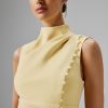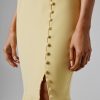 Make a bold style statement with our SAFFRON High Neck Micro Button Midi Dress, now reimagined in a stunning seasonal yellow. Expertly crafted from luxurious premium crepe, this elegant design features a figure-hugging fit that exudes sophistication. The high neckline, adorned with delicate pleat detailing, lends a refined charm, while the flowing midi skirt is elevated by a chic thigh-high split and a flounced hem for an effortlessly flattering silhouette.Intricate micro button accents provide the perfect finishing touch, making this dress an ideal choice for Ladies’ Day, spring weddings, and all your formal occasions this coming season.