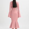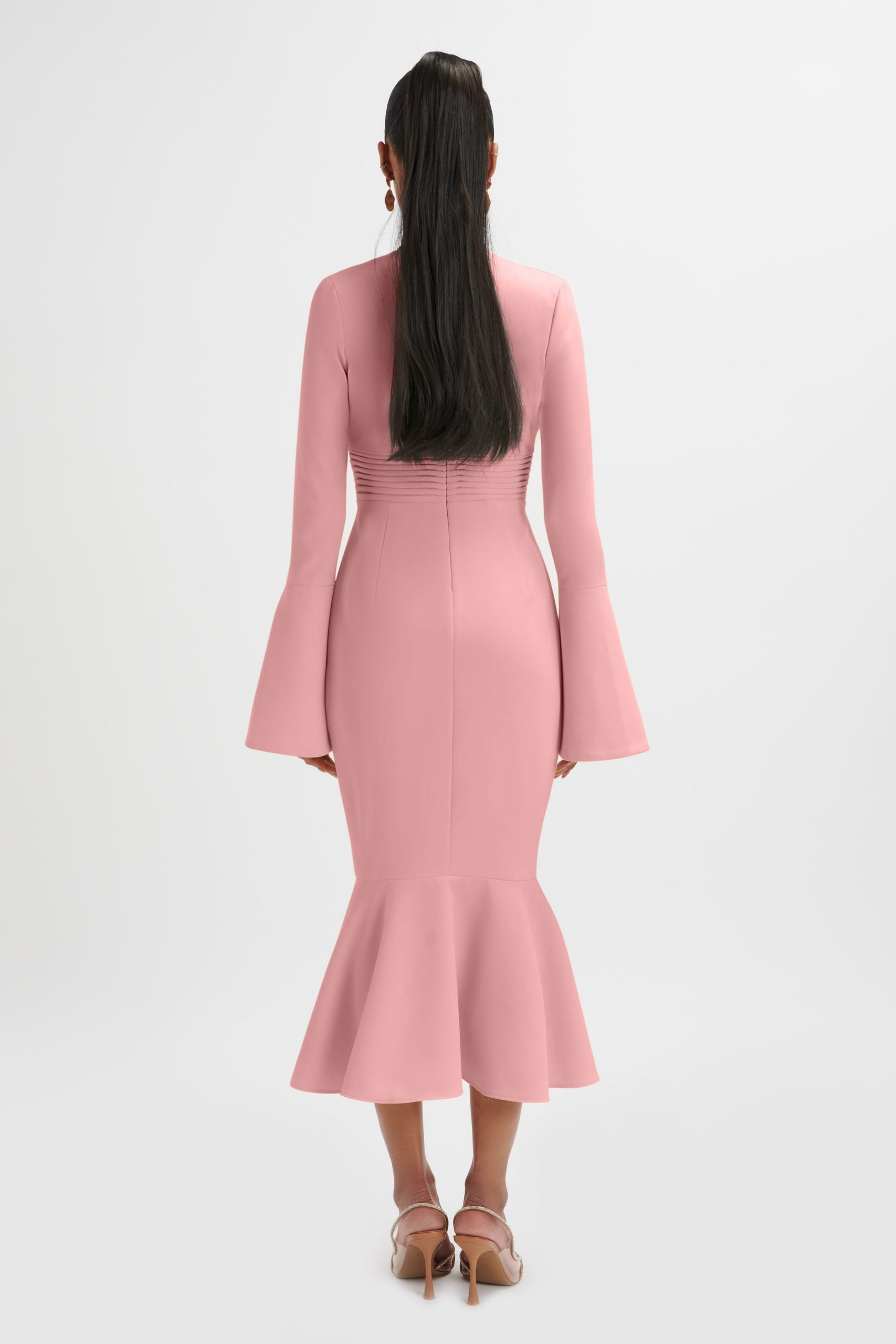 Lavish Alice Women’s Salma Fluted Sleeve Longline Fishtail Midi Dress In Pink