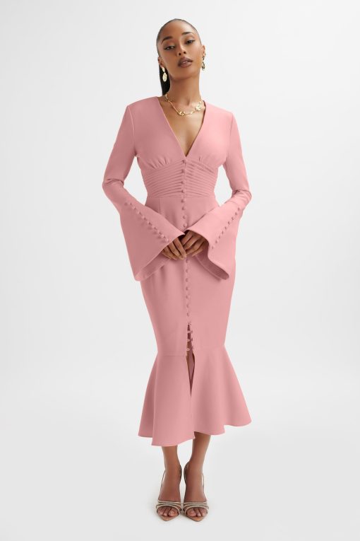 Lavish Alice Women’s Salma Fluted Sleeve Longline Fishtail Midi Dress In Pink