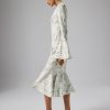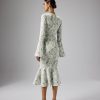 Make a statement at any formal event with our crowd-favourite SALMA Fluted Sleeve Longline Fishtail Midi Dress. Reimagined in an exquisite sage porcelain print, this best-selling design features a graceful fit-and-flare silhouette that flows into a flattering fishtail hemline. Delicate micro buttons embellish the centre front and long, fluted cuffs, lending an air of elegance and refinement, while the pleated waistband effortlessly enhances your shape. Ideal for Ladies’ Day, spring weddings, or garden parties, this masterpiece will you ensure you are the best dressed at any special occasion this coming season.