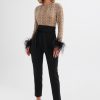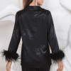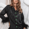 Lavish Alice Women’s Sydney Feather Trim Satin Jacquard Pyjama In Black