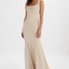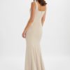 Elevate your special occasion style with our TARA Structured Satin Cowl Front Maxi Dress in Champagne. Crafted from luxurious champagne satin fabric, this dress features a flattering close to body fit and a pleated structured cowl front for a sophisticated touch. Perfect for any formal event.